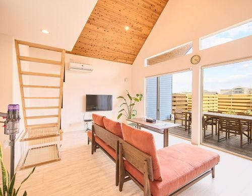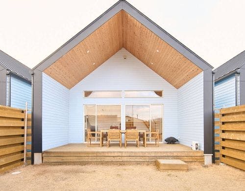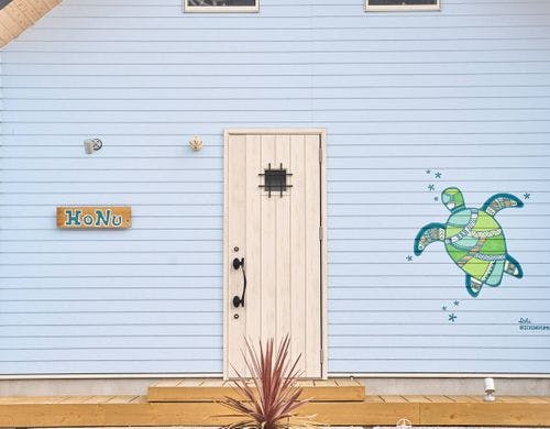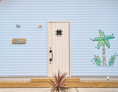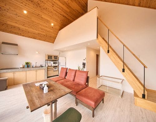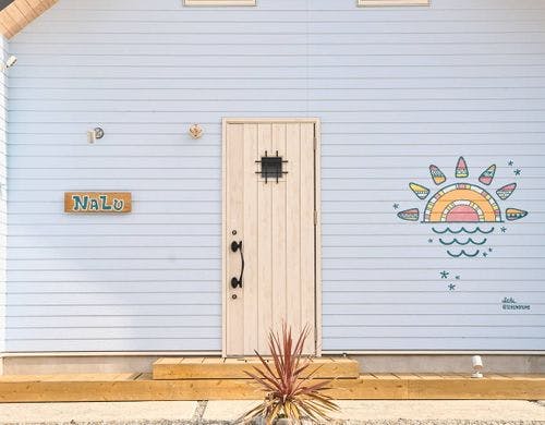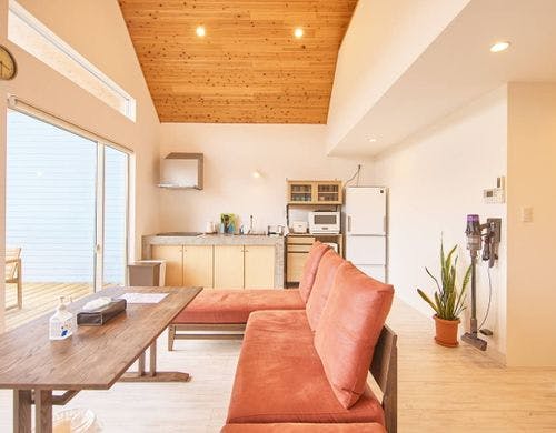 慶野松原海水浴場に近くに立地するコテージ4棟。ペット連れで泊まれる棟も有り。朝ヨガ、SUPなどアクティブ派な人に最適