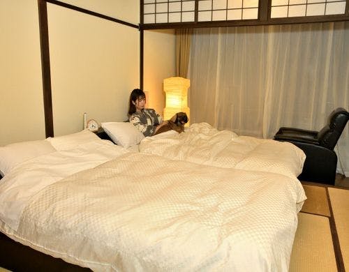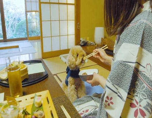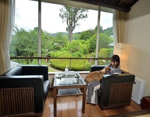 ペットファーストNo1。家族みんなで泊まれる温泉宿。伊豆修善寺で愛犬と癒しのひとときをお過ごしください。