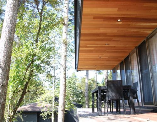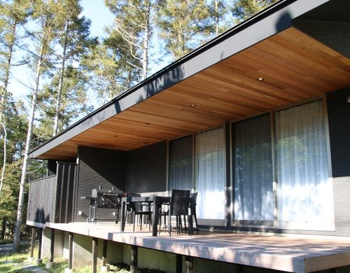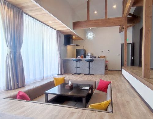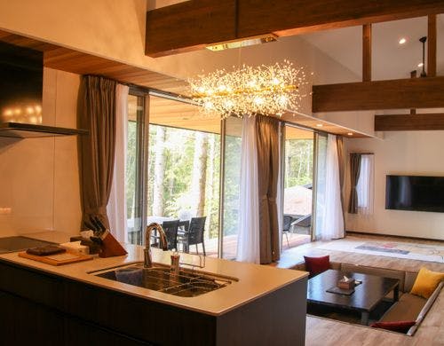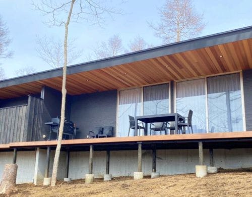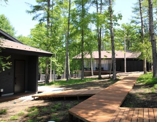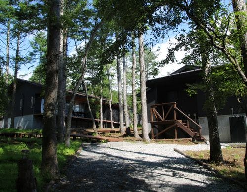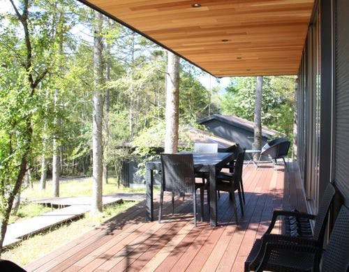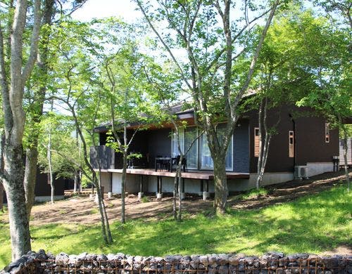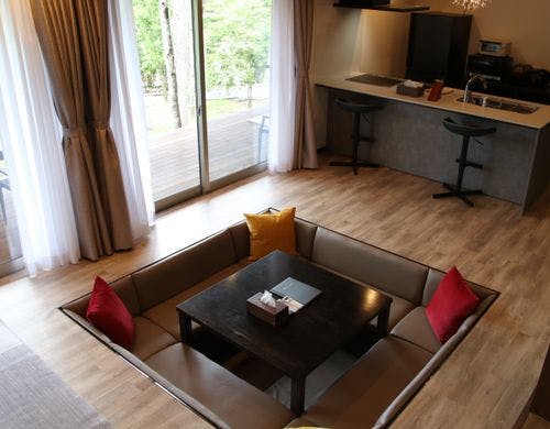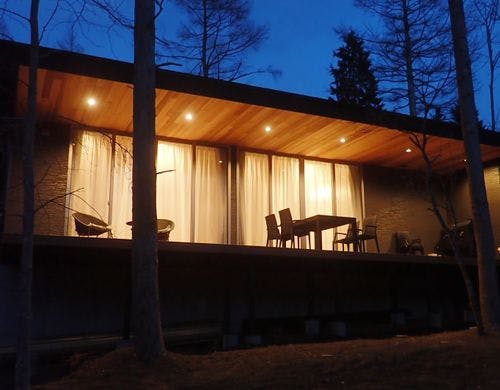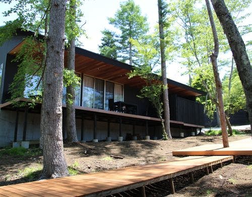 富士山を望む山中湖に程近い、森の中にある一戸建てタイプの貸別荘です。
