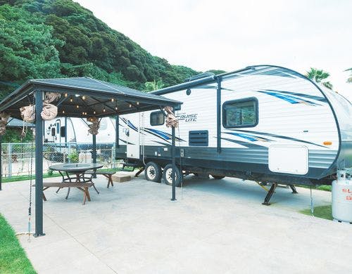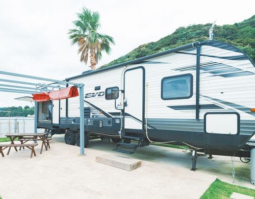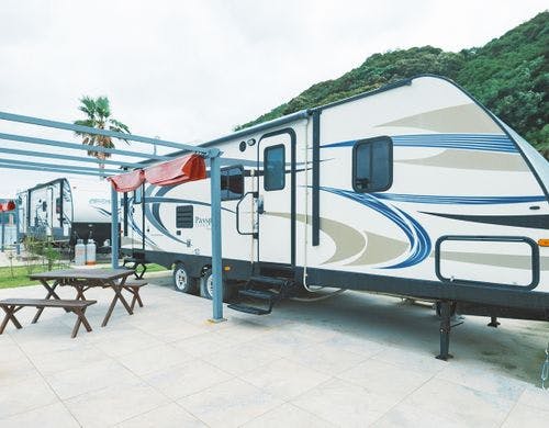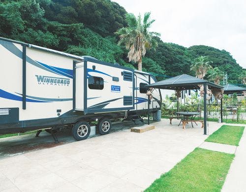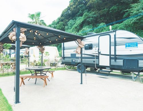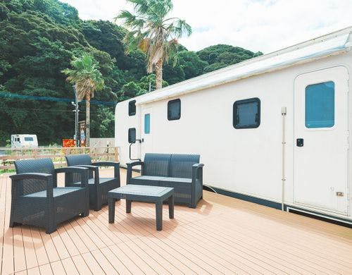 <海が見えるトレーラーハウス>敷地内で釣りができ、釣竿レンタルもあり♪設備充実のトレーラーで手ぶらBBQが楽しめる!