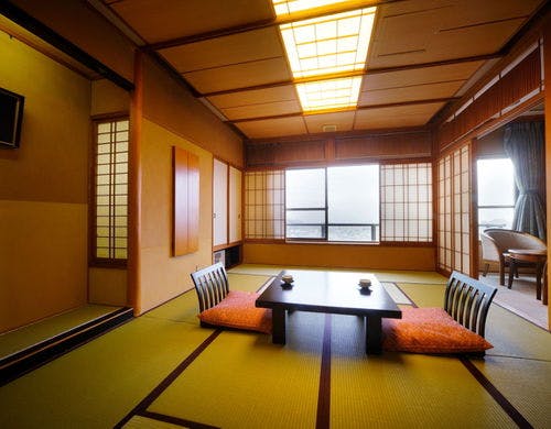 松島湾を見渡せる新富山中腹に位置。海の幸中心のお料理と貸切風呂もおたのしみいただけます。