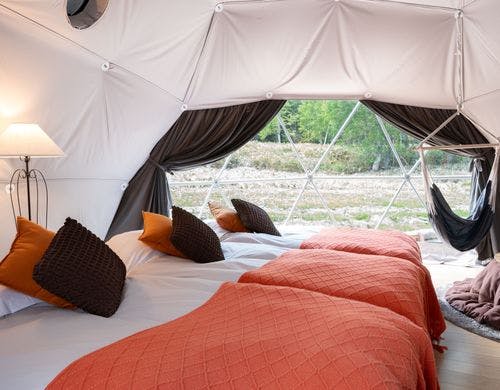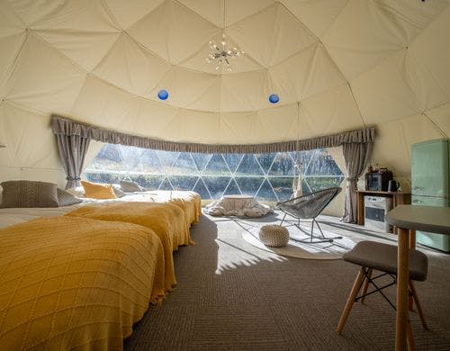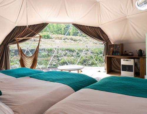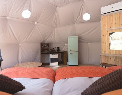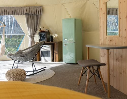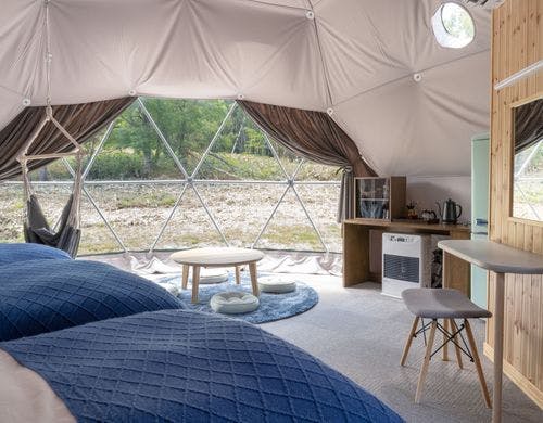 STAY、WORK、ACTIVITY の 3つの要素が整ったグランピングだからワーケーションとしての長期利用も大歓迎。
