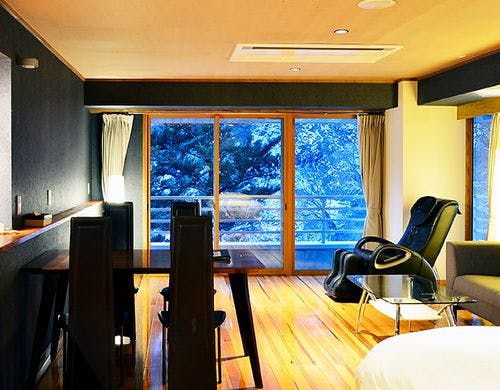 那須塩原に佇む一軒宿。炉端料理と源泉掛け流し天然温泉100%が自慢。最上階には2部屋限定の露天風呂付特別室が人気です。