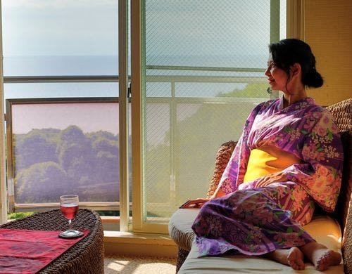 全8室、駿河湾を臨む露天風呂付き客室。アジアンテイストに満ちた小さな宿。