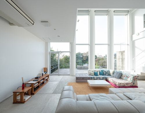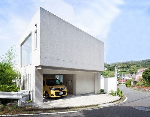 海を見下ろす高台に立ち、天井高6mの吹き抜け空間により、海と空の両方を堪能できる3階建てのデザイナーズハウスです。