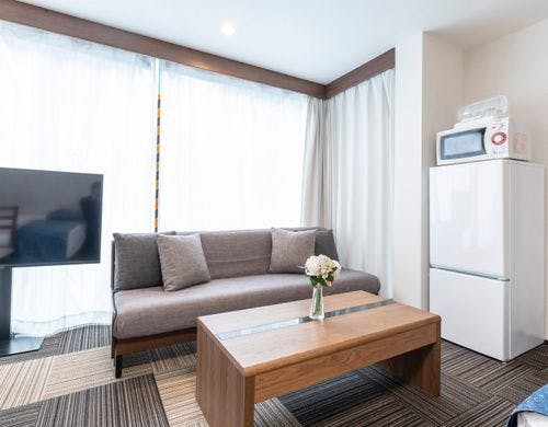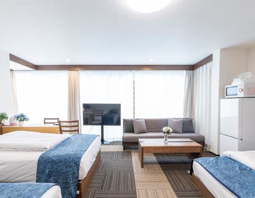 駅から徒歩3分の道頓堀沿いにホテルです!広いお部屋なので家族宿泊に人気です!大阪の街をお楽しみください♪