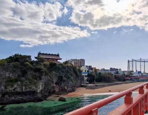 - 那覇空港からタクシーでお越しの場合は、「波の上ビーチ前」とお伝えください。運賃は1100円前後で約10分で着きます。ゆいレールでお越しの場合は、「県庁前」駅で下車し福州園・波上宮方面へ徒歩で約15分です。