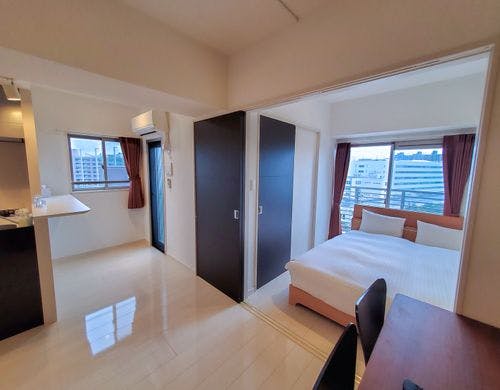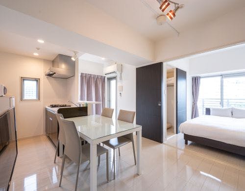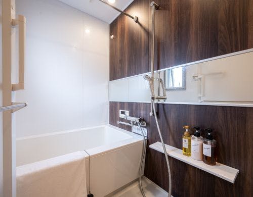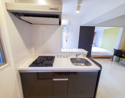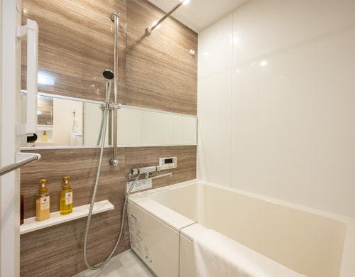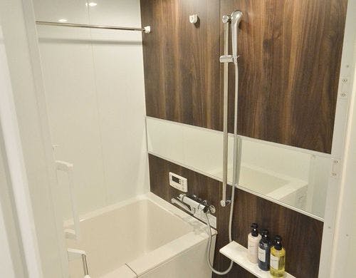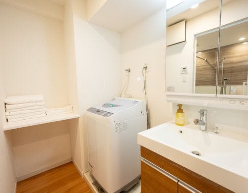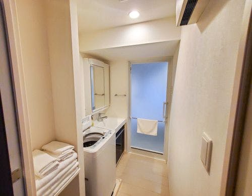 バスルーム、洗濯機、ウォシュレット完備。一泊から長期滞在まで適したホテル!
