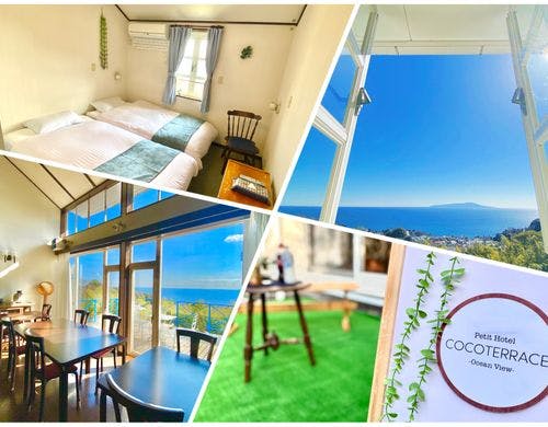 全客室から海一望のプチホテル。朝は海から昇る朝日でお目覚め。伊豆急行線富戸駅から徒歩1分、ぐらんぱる公園徒歩圏!全館高速WiFi完備、ファイヤーTV貸出しあり!海展望テラス、山側テラスでBBQも!