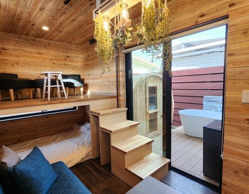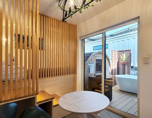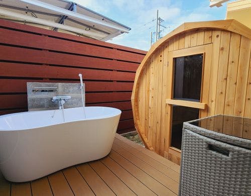 全客室バレルサウナ付で快適ステイ。洗濯乾燥機付きで家族や長期滞在におすすめ。満タン返し不要のレンタカー付プラン有。