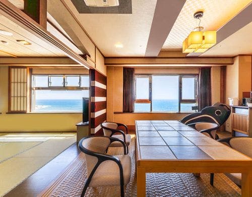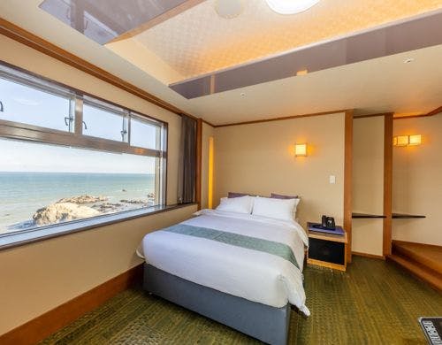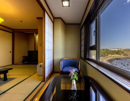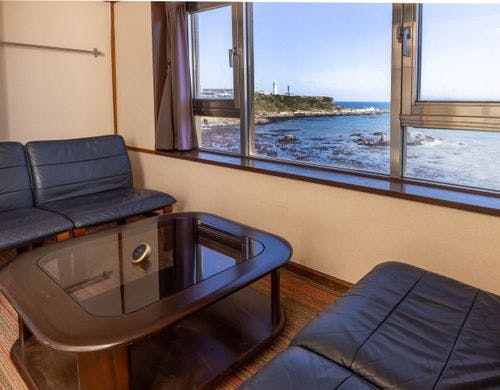 当館は銚子のシンボル犬吠埼灯台を間近に臨み、太平洋を眼下に従えた海辺のホテルでございます。