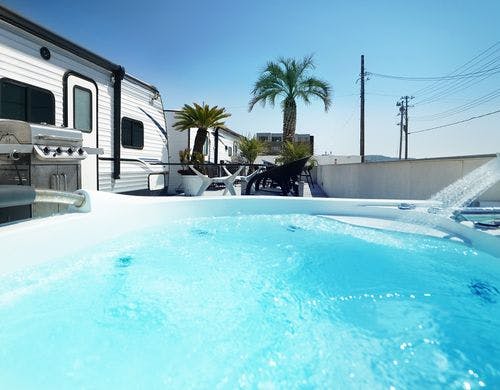 オーシャンビューのジャグジーで過ごす至福の時間。海に包まれる贅沢なひとときを。