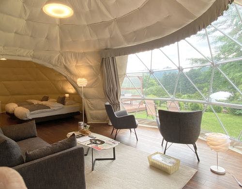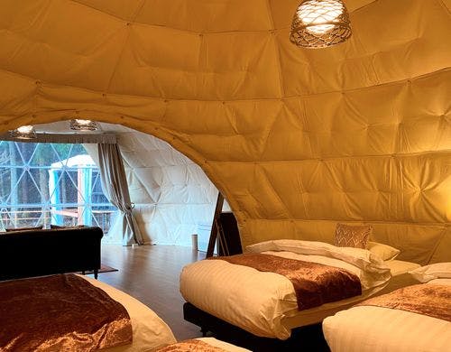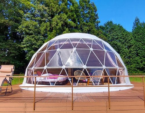 日光初のドームグランピング施設。四季折々、全18棟のドームテントと地元素材を使ったBBQを堪能!