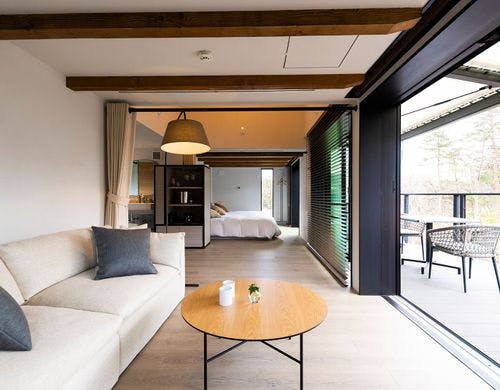 富士山麓と繋がっているかのような絶好のロケーションに、バラエティーに富んだヴィラ棟を全15室をご用意しております。