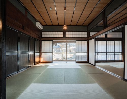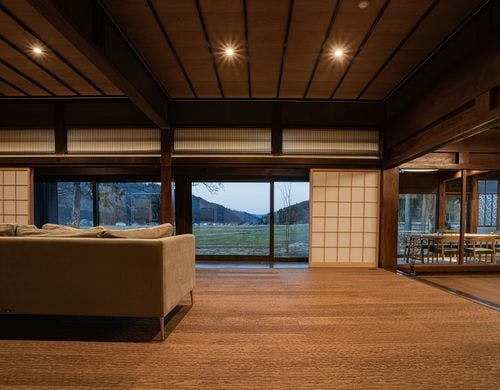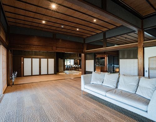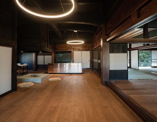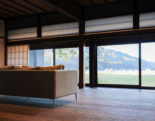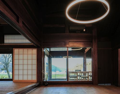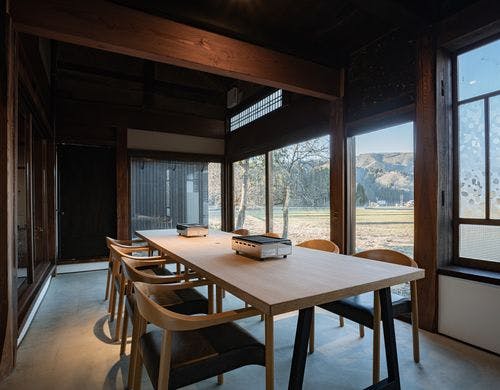 令和5年6月に新たにオープンいたしました。ふらふは築120年の古民家をモダンで快適な空間に改修した一棟貸しホテルです。里山の風景を眺めながら、心地のよい無二の時間をご堪能ください。
