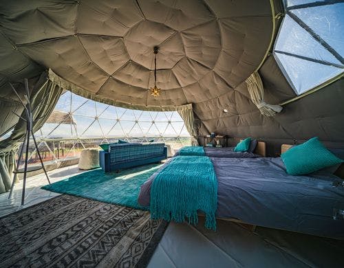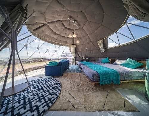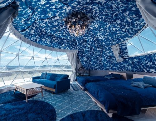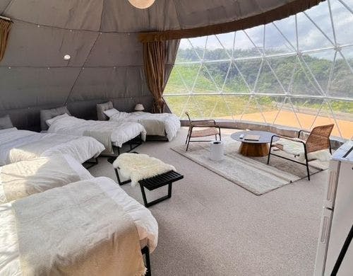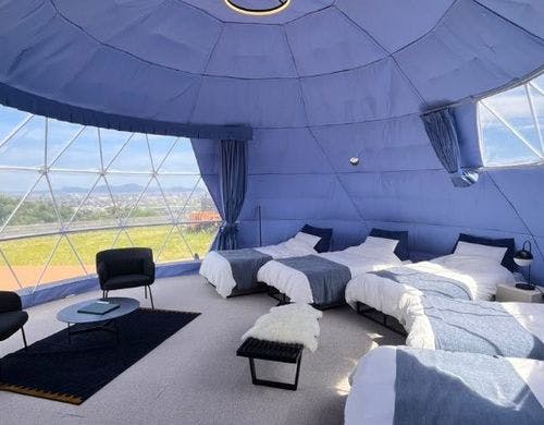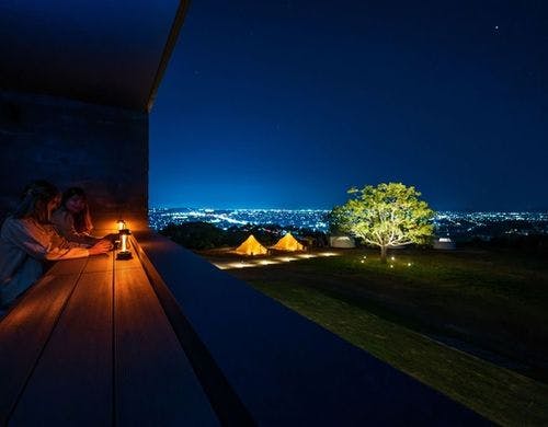 倉敷の中心街から車で15分。 岡山の街並みを一望できる眺めと、「空」の美しさを堪能できるグランピングリゾート。