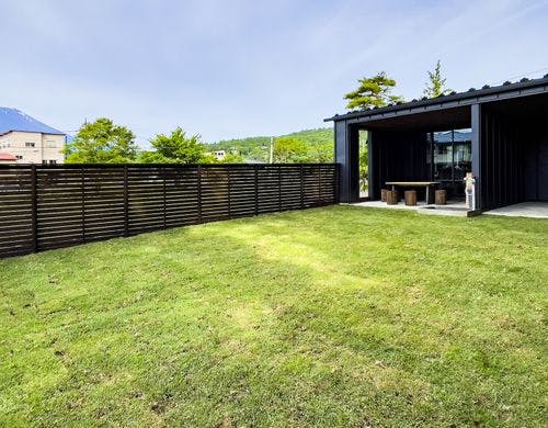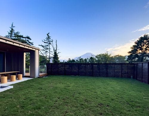 2023年7月オープン。富士山を眺望できる山中湖湖畔から徒歩4分。愛犬様とお泊まり頂ける、芝生プライベートドッグラン、外部立水栓、ペットアメニティ、BBQ台、特大投影のプロジェクター付の貸別荘です。