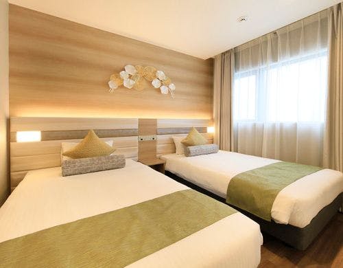 緑溢れる共有プール「WATER GARDEN」や、南国気分を味わえる「POOLSIDE BAR」、睡眠改善サポートに特化した施術を受けられるスパ、トレーニングジムなどを備えています。レストランでは、和洋琉の朝食ビュッフェや沖縄料理を中心とした夕食ビュッフェを堪能できます。