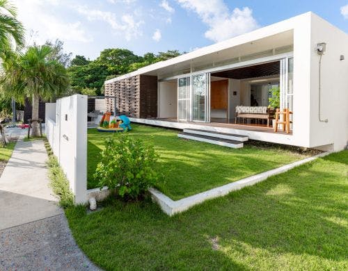 当該施設は自然豊かな立地で、ゆったり寛げる時間を提供しています。目の前に面している羽地内海では、満潮時には釣り、または、カヌーで周遊し、干潮時には、潮干狩りや海散策などを楽しむことができます。