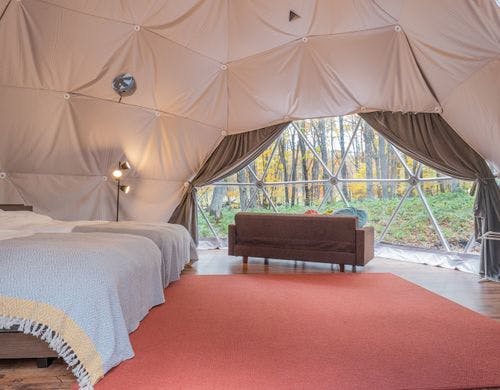 地元ワイナリーがプロデュースする北海道グルメ×グランピング!極寒冷地仕様のドームテントでどんな季節も快適♪