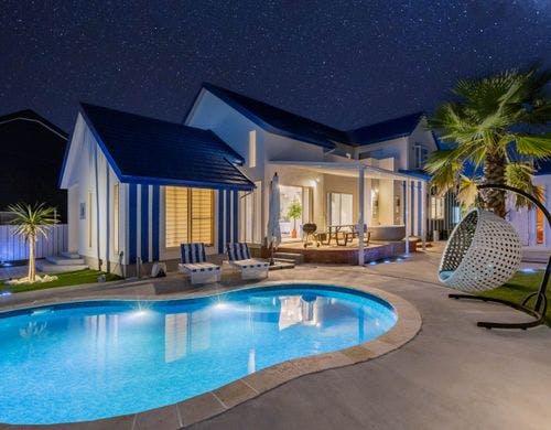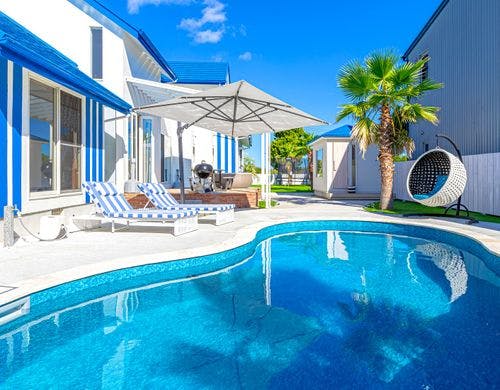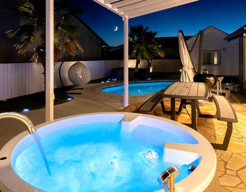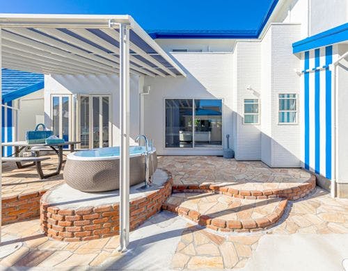 一棟貸切の完全プライベート空間の別荘。開放的な室内とBBQ可能な広いテラス、子供たちや愛犬も自由に走りまわれる庭にはプールやジャグジー、サウナまでも。思うままの優雅な大人の休日をお過ごし頂けます。