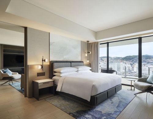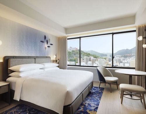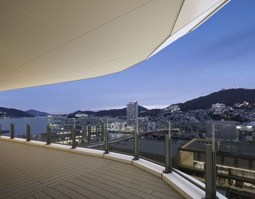 稲佐山と長崎港を望む、JR長崎駅に隣接した抜群の立地。客船を思わせる外観の「長崎マリオットホテル」が誕生。