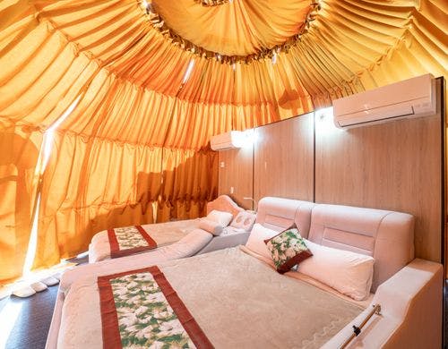 富士山を眺めながら手軽にグランピングを堪能してみませんか?専用グリルでBBQを楽しみながら星空を眺める特別な体験を提供します!