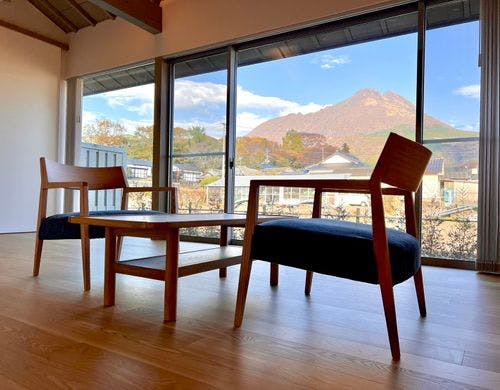 由布院駅より徒歩5分、プライベート一棟貸しのラグジュアリーな空間を演出、由布岳を眺望できる広々とした