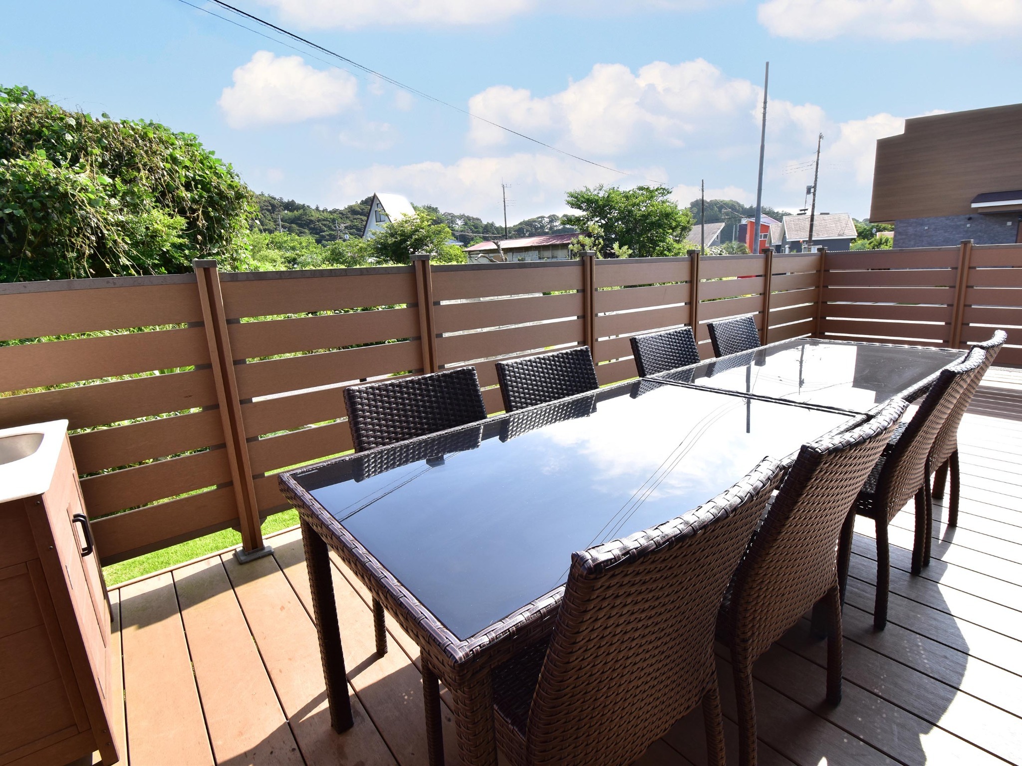 充実のキッチン設備に加え、BBQテラスも付いているので、暮らすように泊まる滞在が可能!