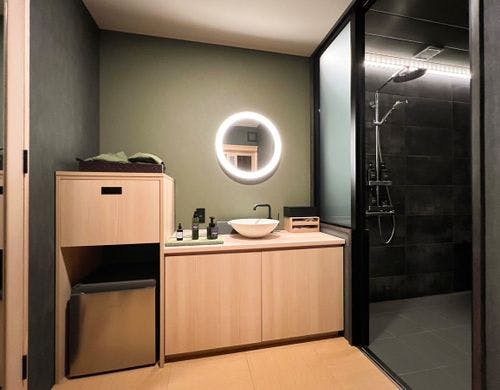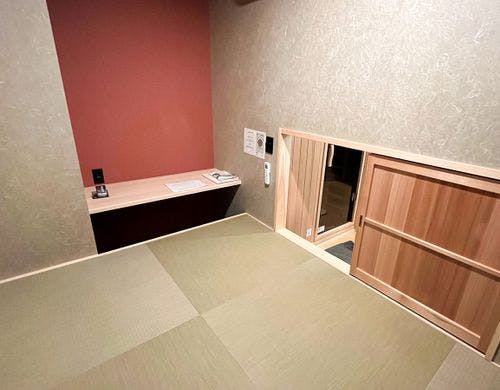 完全プライベートの遠赤外線サウナ付客室は、松江の茶道文化につながる茶室をコンセプトとした和室。抹茶体験も楽しめます