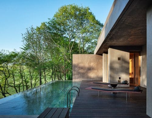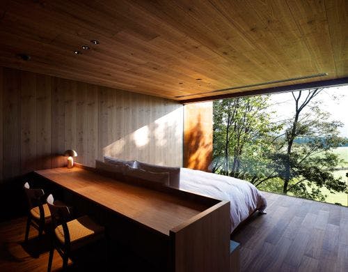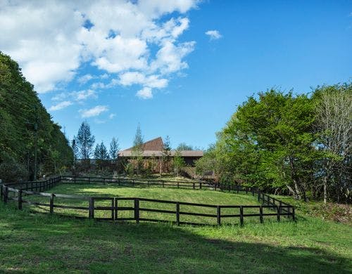 趣の大きく異なるふたつの家が点在し、それぞれに備わる自分だけのサウナや露天風呂。広大な自然以外に余計なものは何もない。広い牧場の高台で、気持ちがととのう一軒家。
