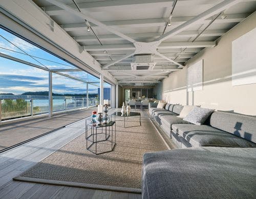 1フロア貸切のプライベート空間、目の前は遮るものがない鎌倉の海、1日1組限定。