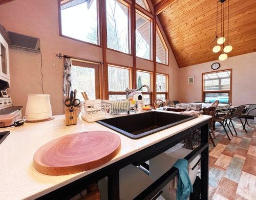 浅間山北麓の森の中に位置する『わんこファーストの貸別荘』。標高2,200m以上に位置し、夏でもわんこ達が快適に過ごせます