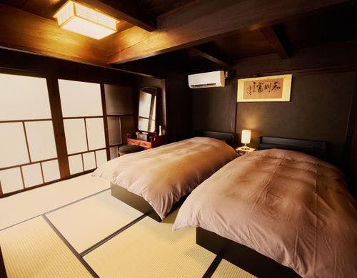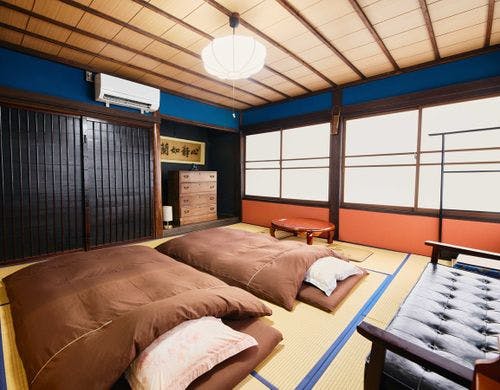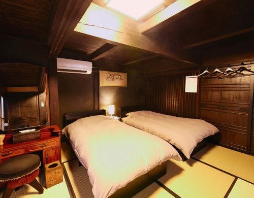 1800年代にタイムスリップしたような街並みが続く白壁の町。豪商が贅を尽くして建築した商家住宅がゲストハウスに。