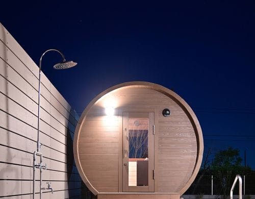 都心から約80分。バレルサウナ、プール、BBQテラス、ドッグラン完備。九十九里浜海岸まで徒歩10分。