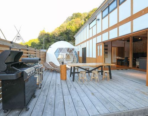 広島 竹原にある開放感溢れるグランピング施設。こだわりの設備を揃え、女性の方や初めての方でも安心して楽しめるくつろぎと癒しの非日常空間。豊かな自然の中で日々の喧騒から離れて、穏やかで贅沢な時間をのんびりとお過ごしください。