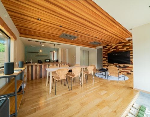 76平米の「山北の灯り」は山の麓にある1棟貸し。 耳をすませば木々の揺れる音が聞こえる。