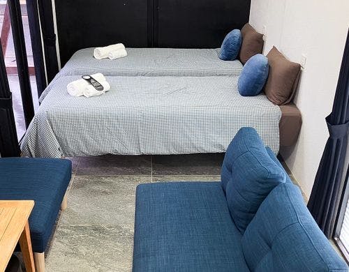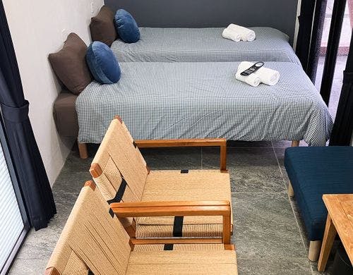 宮古島南部、さとうきび畑に囲まれた隠れ家のような宿。海上コンテナを改装したユニークな建物です。サニツ浜まで徒歩約10分!