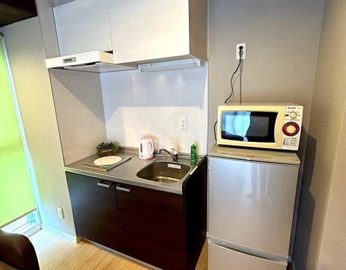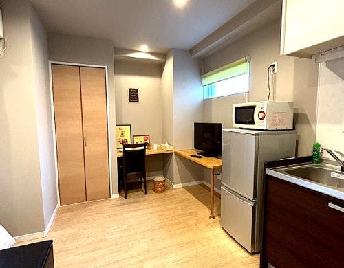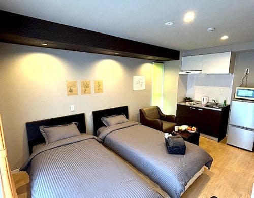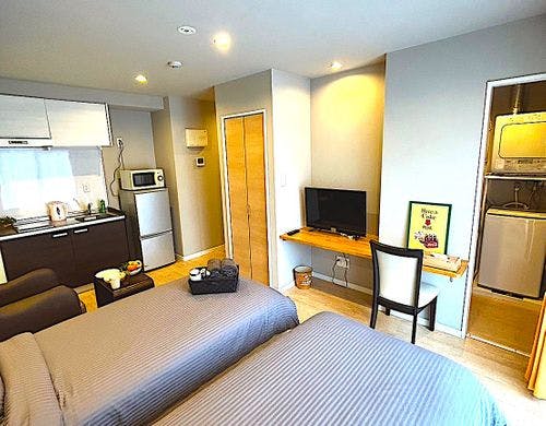 旅先で暮らすように泊まるをコンセプトに、生活に必要な設備が整ったお部屋 1階には受付がいるので安心