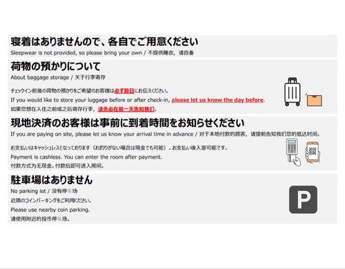 - スタッフは常駐でない場合があります。詳しくは宿泊施設にご確認ください