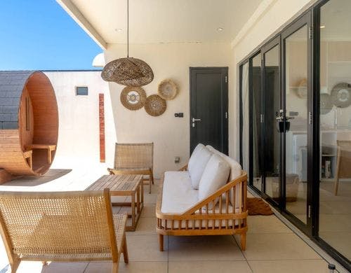 高台から宮古島の海を一望、プール・ジャグジー・サウナ付きオーシャンビュープライベートヴィラ。10名迄の大人数も利用可。