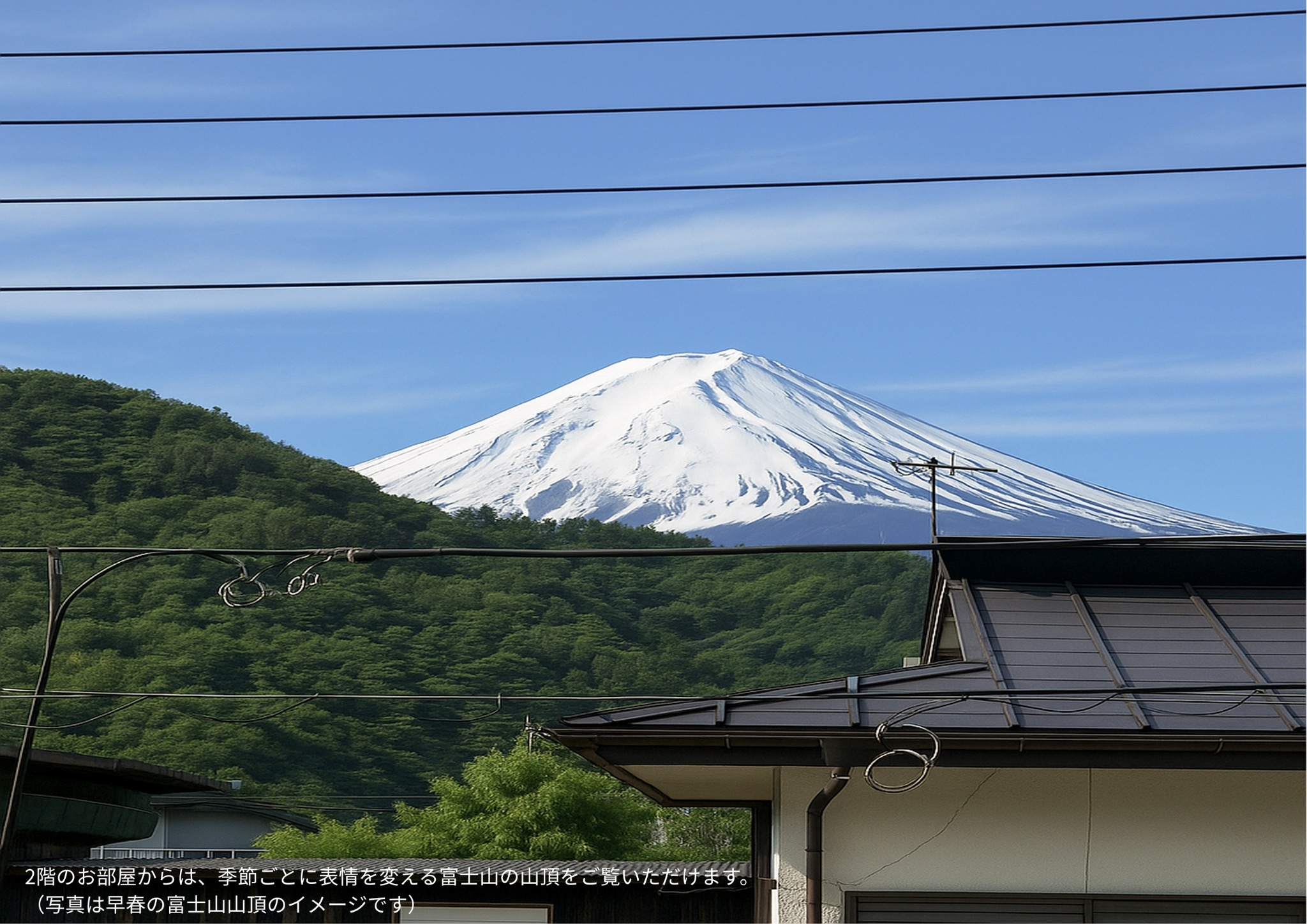 【2階のお部屋からは、季節ごとに表情を変える富士山の山頂をご覧いただけます。