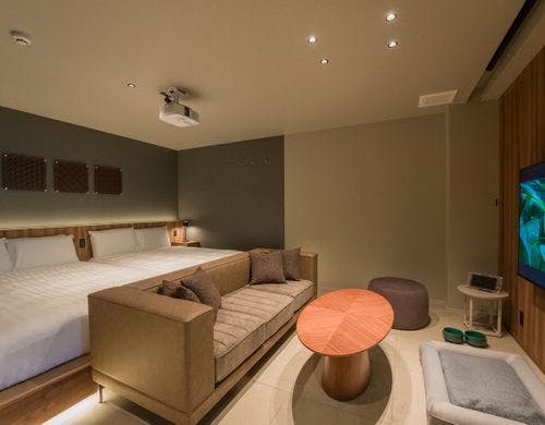 ※1部屋につき1台(無料・事前予約不要)※チェックアウト後の駐車場利用はできませんので予めご了承ください。※EV充電器 6台 先着順 (エネチェンジ製、充電代有料)※テスラ車のみ専用アダプター必要