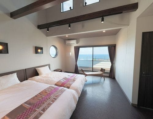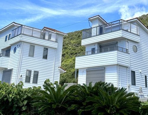 奄美大島でのホエールウォッチングは、冬1月から3月頃限定で、繁殖子育てのために訪れるザトウクジラを観察する人気のレジャー。奄美大島の龍郷町にある1日2組限定の貸切プライベートハウス。美しい海の景色を楽しみながら、南欧風とアジアンテイストの落ち着いたインテリアで過ごせます。
