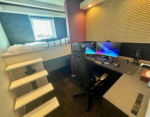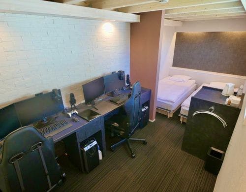 客室は全て遮音性に優れた1棟独立型のコテージ。オンライン会議、ボイスチャットや動画配信が出来るハイスペックPCを完備。