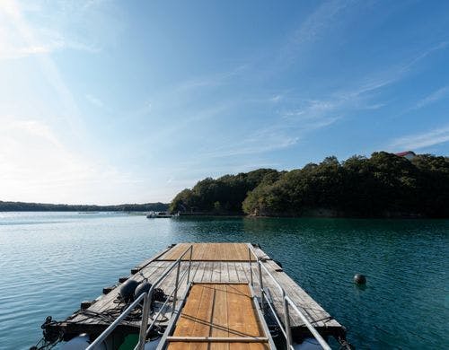 - 船着場からUMILABOまでは、船にてご案内いたします。 お車でお越しの際は、UMILABO HARBOR(船着場)まで直接お越しください。船着場より送迎いたします。船で5分ほどです。