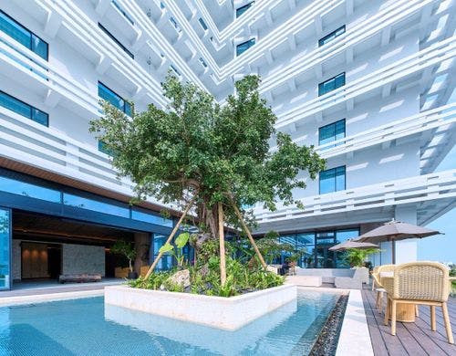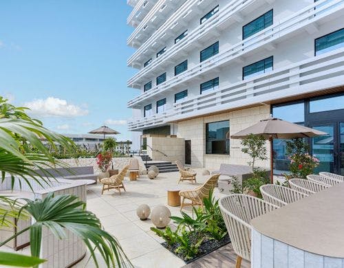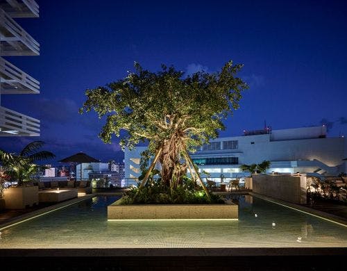 今回「ザ ロイヤルパークホテルホテル アイコニック 那覇」が出店するのは70年余りにわたり地域の方々と共に歩み、現在の沖縄経済の基盤を築いてきた「琉球銀行」本店。 1階にホテル専用のエントランスを構え、7 階~13 階がホテルエリアとなります。<br><br>7 階には、ロビーやフロントのほか、ご宿泊者専用プールやジム、エグゼクティブラウンジなどの機能を集約。レストランは、オールデイダイニング・鉄板焼・鮨と、多様なご利用シーンに合わせてお使いいただける3 店舗が 7 階にございます。フロア中央にはシンボルツリーのガジュマルが印象的なテラスを配置。ロビーやダイニングともつながり、この土地ならではの開放的で穏やかな時間の流れを感じていただける空間です。<br><br>ご滞在を通して、「琉球の島々に、育まれる。」ひとときをご提供いたします。ゆいレール「県庁前駅」からもすぐの立地で、空港や島内各地へアクセス至便な立地で、国際通リも徒歩圏内にあります。<br><br>ビジネス面においても、大手企業の支店やオフィスビルが多く集まるエリアで、観光・ビジネスの両方でロ弁性をご提供いたします。