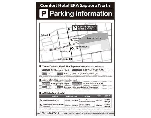 ■敷地内駐車場(1泊14:00~翌11:00)(1)台数:7(うち1台は身障者用)(2)料金:1,800円(3)利用方法 :フロントにて割引QRコードをお渡し、出庫時に駐車場精算機にて支払い。身障者用は駐車前にフロントへ連絡必要。精算はフロント(4)制限:普通車全長5m×全幅1.8m×全高2.4m以下