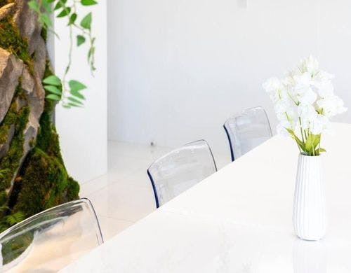 豊かな緑が視覚的にも癒しを提供し、空間全体にフレッシュで彩りのある空気感を演出します。
