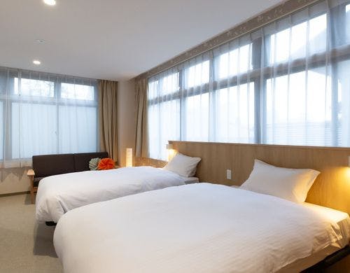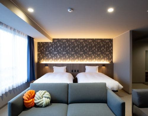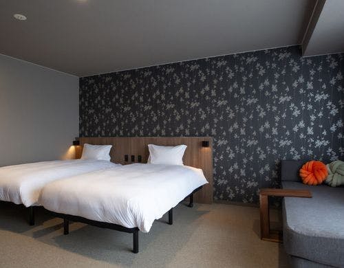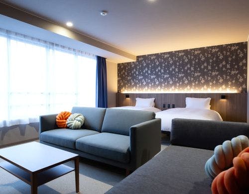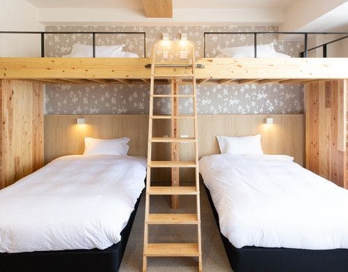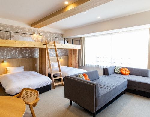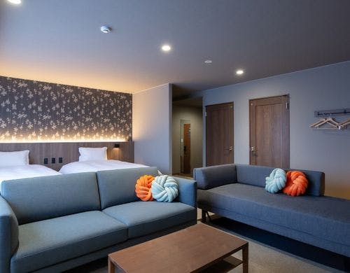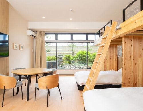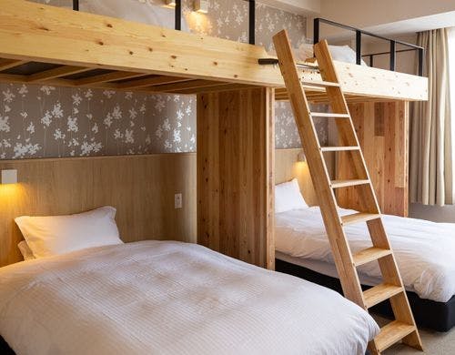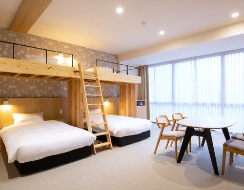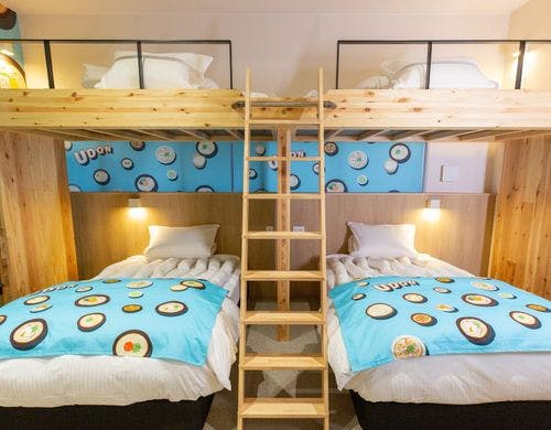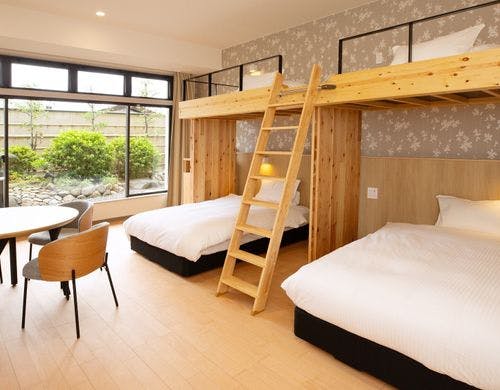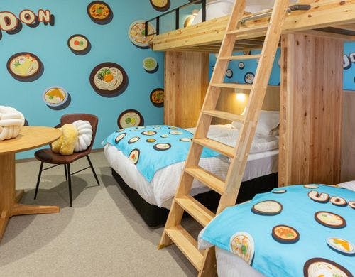 \2025年10月3日リニューアルOPEN/最大6名様までOKのロフト付き客室!全室裸足で過ごせる客室!釜玉うどん風のお接待があるホテル!